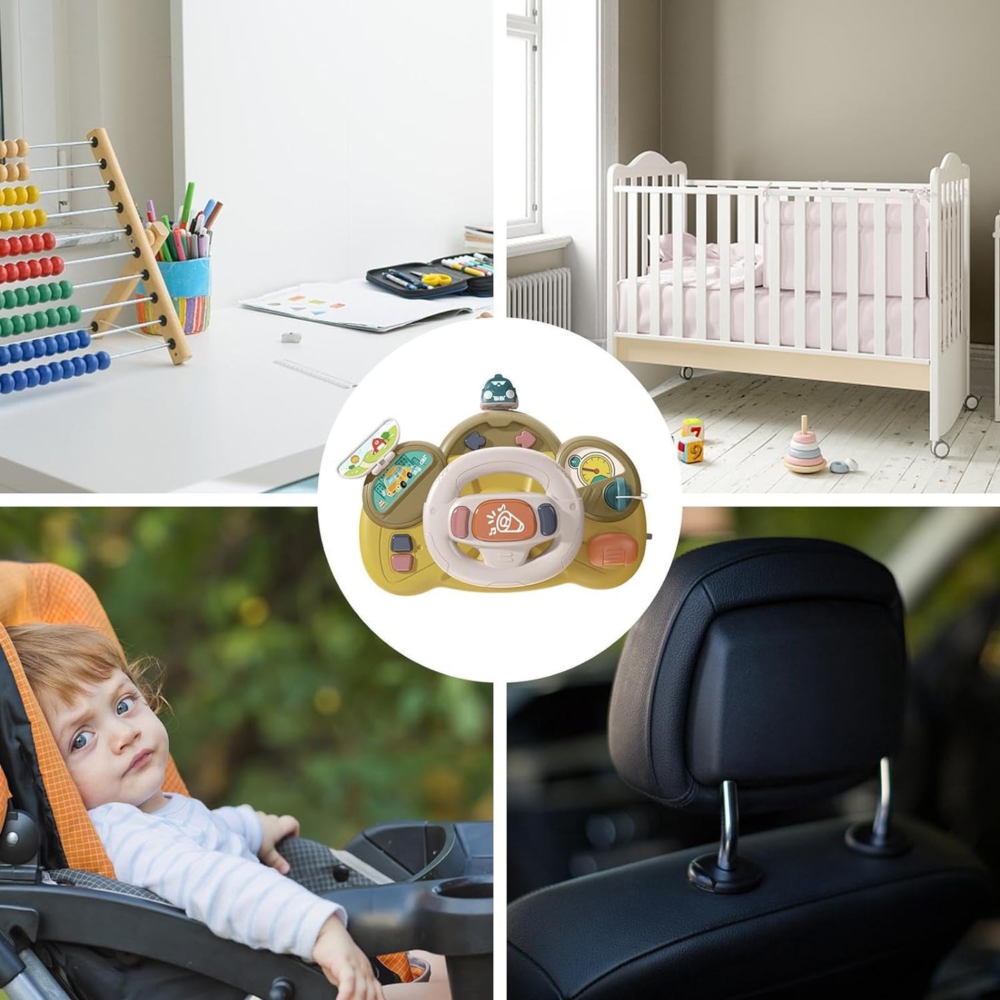 🔧 Montaje sin Complicaciones: Con una correa ajustable y fuerte textura adhesiva, este volante se puede colgar y montar fácilmente en superficies lisas, asegurando un juego ininterrumpido. 🛠️👶