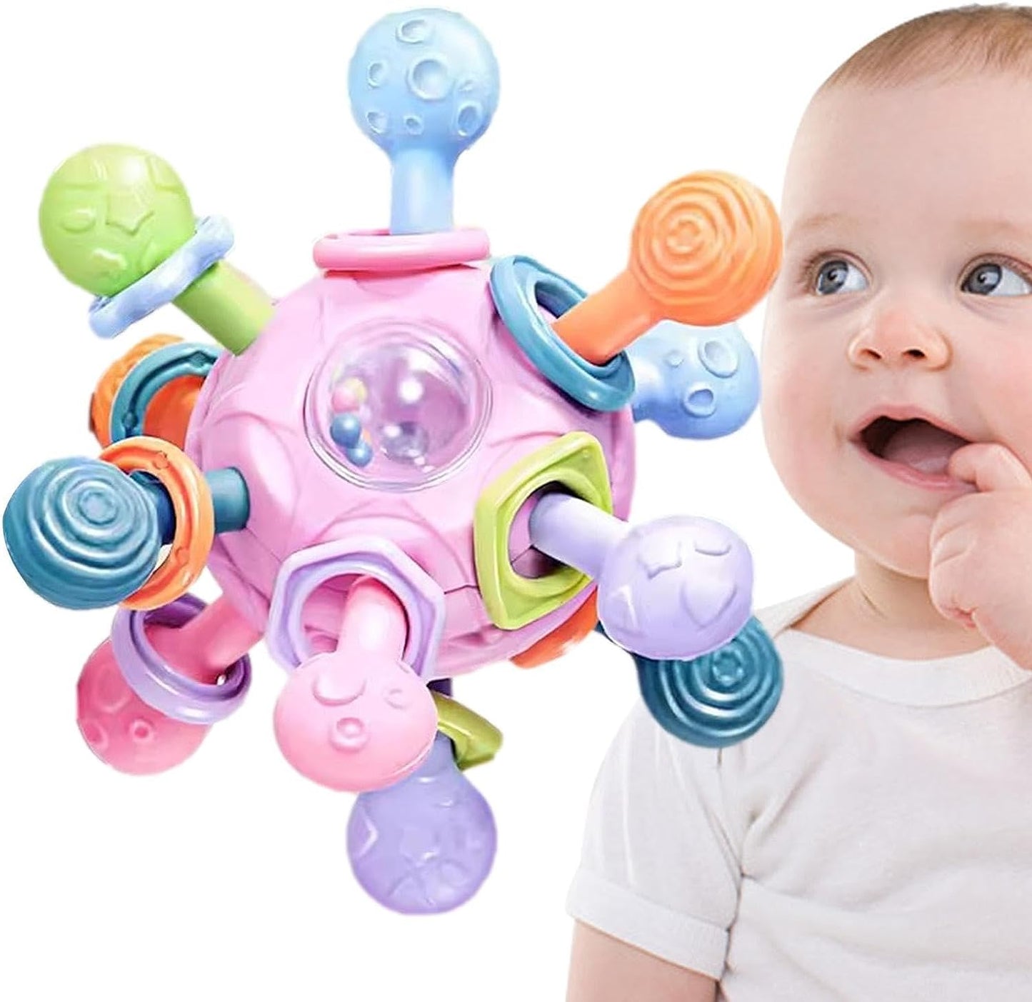 4. Mordedores tipo sonajero con forma de bola: el juguete de sonajero construido con bolas pequeñas que, cuando se agita ligeramente, emitirá un crujido y un timbre melodioso, lo que puede cultivar la capacidad auditiva del bebé. Seguro para jugar: el juguete de silicona para la dentición para bebés tiene una superficie lisa y no tiene rebabas.